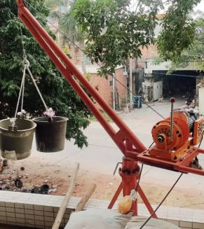 室外吊運(yùn)機(jī)的結(jié)構(gòu)非常簡單,但是卻能用極少的零部件承擔(dān)起重物吊裝重任,因?yàn)榈踹\(yùn)機(jī)上使用了三角形穩(wěn)定性強(qiáng)的結(jié)構(gòu)原理,所以在給吊運(yùn)機(jī)底座壓好配重的情況下,吊運(yùn)機(jī)吊臂既能吊重又能左右來回自由旋轉(zhuǎn),如果打破了這種平衡狀態(tài),重物就會(huì)掉落。
